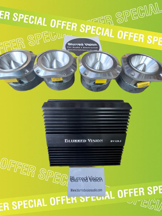 Blurred Vision Audio Loud PACK Bundle Pack (4) 4" Super Tweeters+ (1) Amplifier 120.2 Amplifier